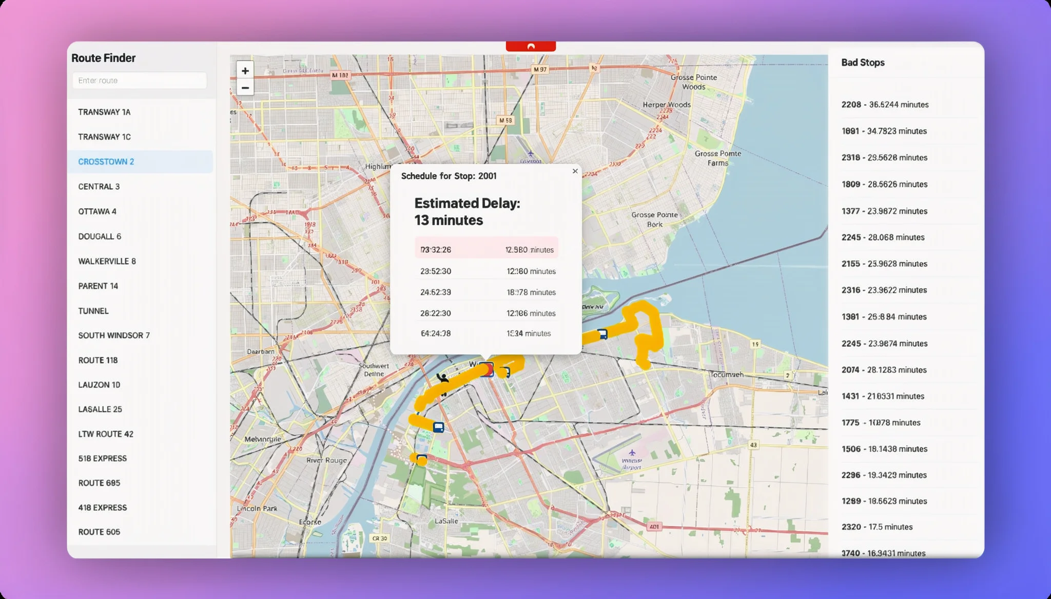 A real-time bus tracking system powered by Spring Boot and React, offering precise arrival predictions and delay forecasts through GPS integration and advanced analytics.